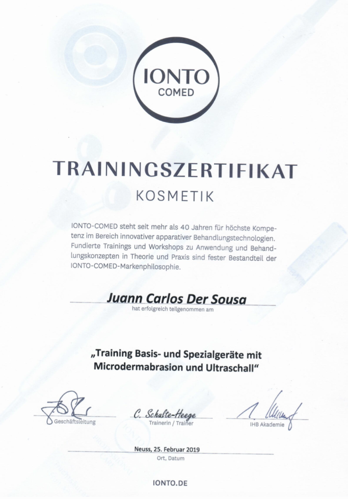 Nach seiner Ausbildung zum Kosmetiker absolvierte er mehrere spezialisierte Weiterbildungsmaßnahmen in renommierten brasilianischen und deutschen Kosmetikinstituten.